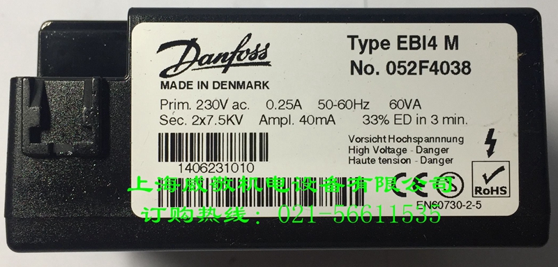 丹麥丹佛斯Danfoss高壓包EBI 4M NO.052F4038點(diǎn)火變壓器